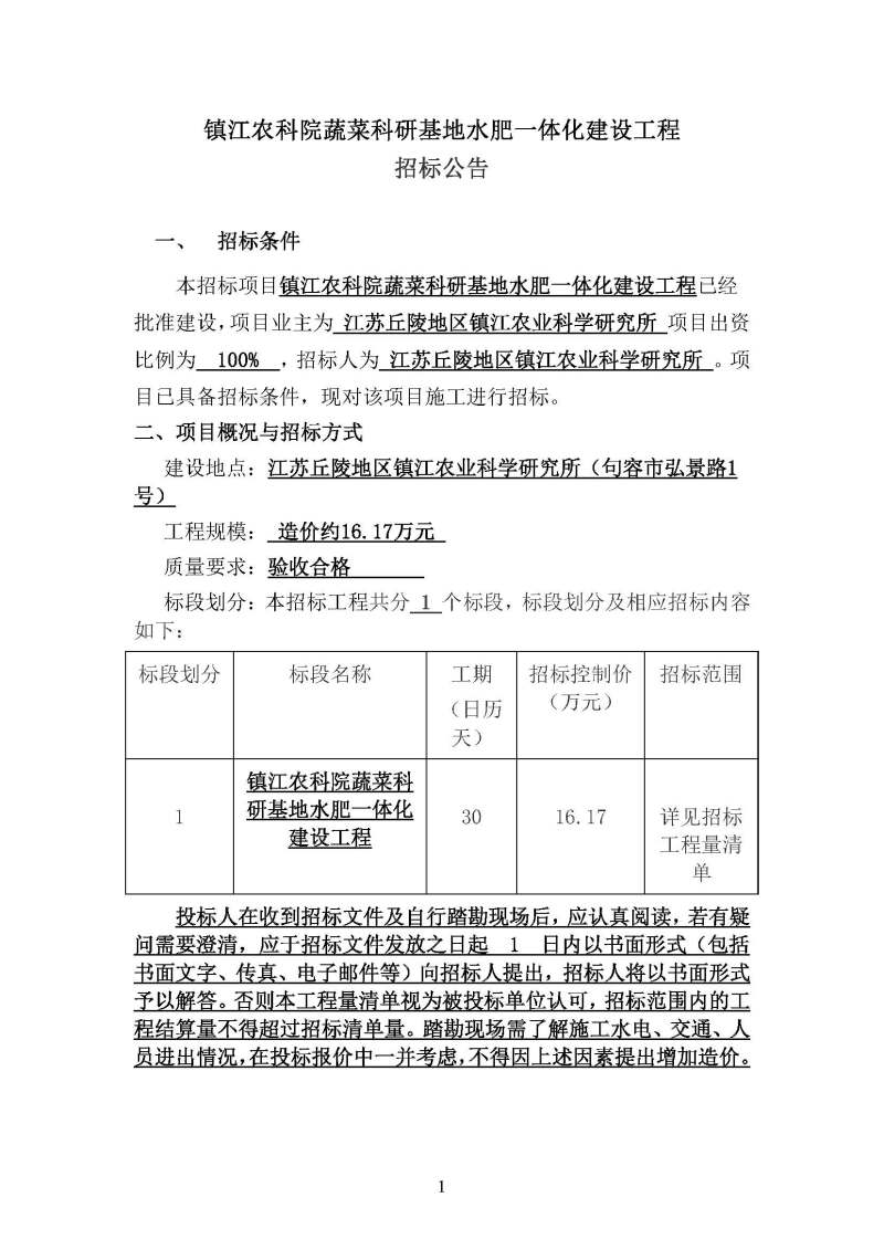 镇江农科院蔬菜科研基地水肥一体化建设工程
