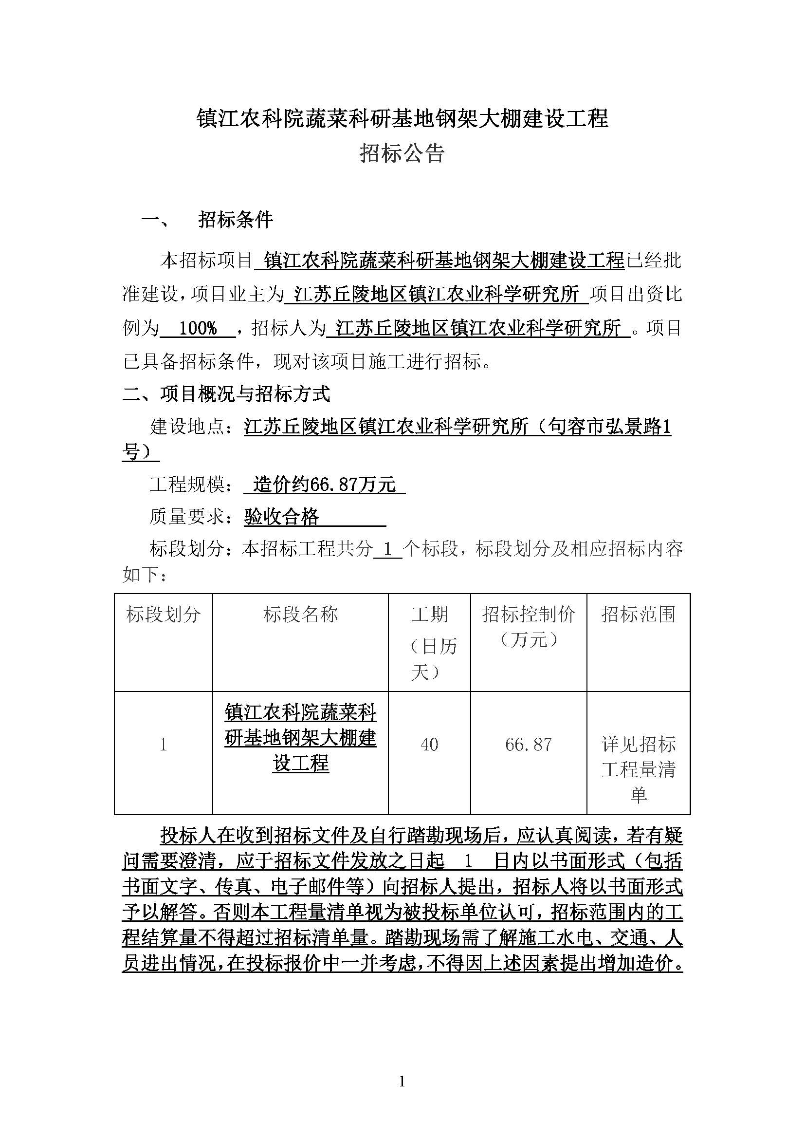 镇江农科院蔬菜科研基地钢架大棚建设工程
